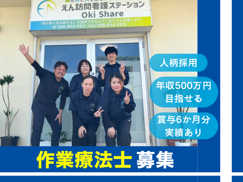 ⭐明るくて、勢いのある訪問看護です!⭐ 「えん訪問看護ステーション Oki Share」は 明るく・元気に・本気で地域医療に向き合う訪問看護ステーションです。 利用者さま一人ひとりに真摯で丁寧に向き合い、 「どうしたら住み慣れた環境で自分らしく過ごせるか?」を 自分ごととして考え、すぐ動く そんなフットワークの軽さが、私たちの強みです!